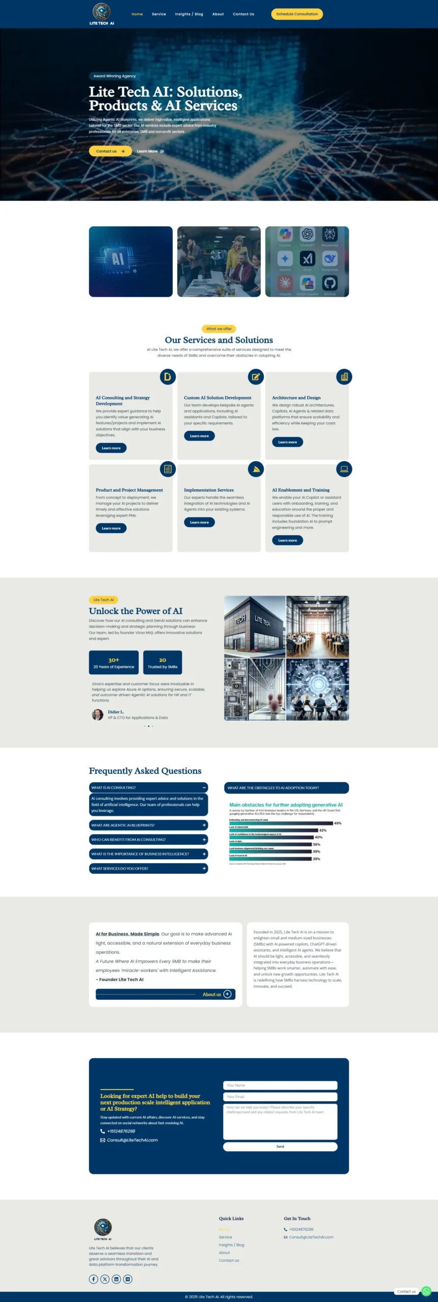We had the opportunity to develop a custom website for Lite Tech AI, a forward-thinking AI consultancy based in Austin, TX. This was a highly challenging yet rewarding project, completed over a span of 12 days. Throughout the development process, we collaborated closely with the client, iterating the design and layout nearly 10 times to match their exact vision and brand identity. From structure adjustments to fine-tuning UX elements, every detail was refined based on client feedback. The end result was a responsive, modern, and high-performing website that effectively showcases their AI solutions and thought leadership. The client was extremely satisfied with the final outcome—and that made all the effort truly worthwhile.