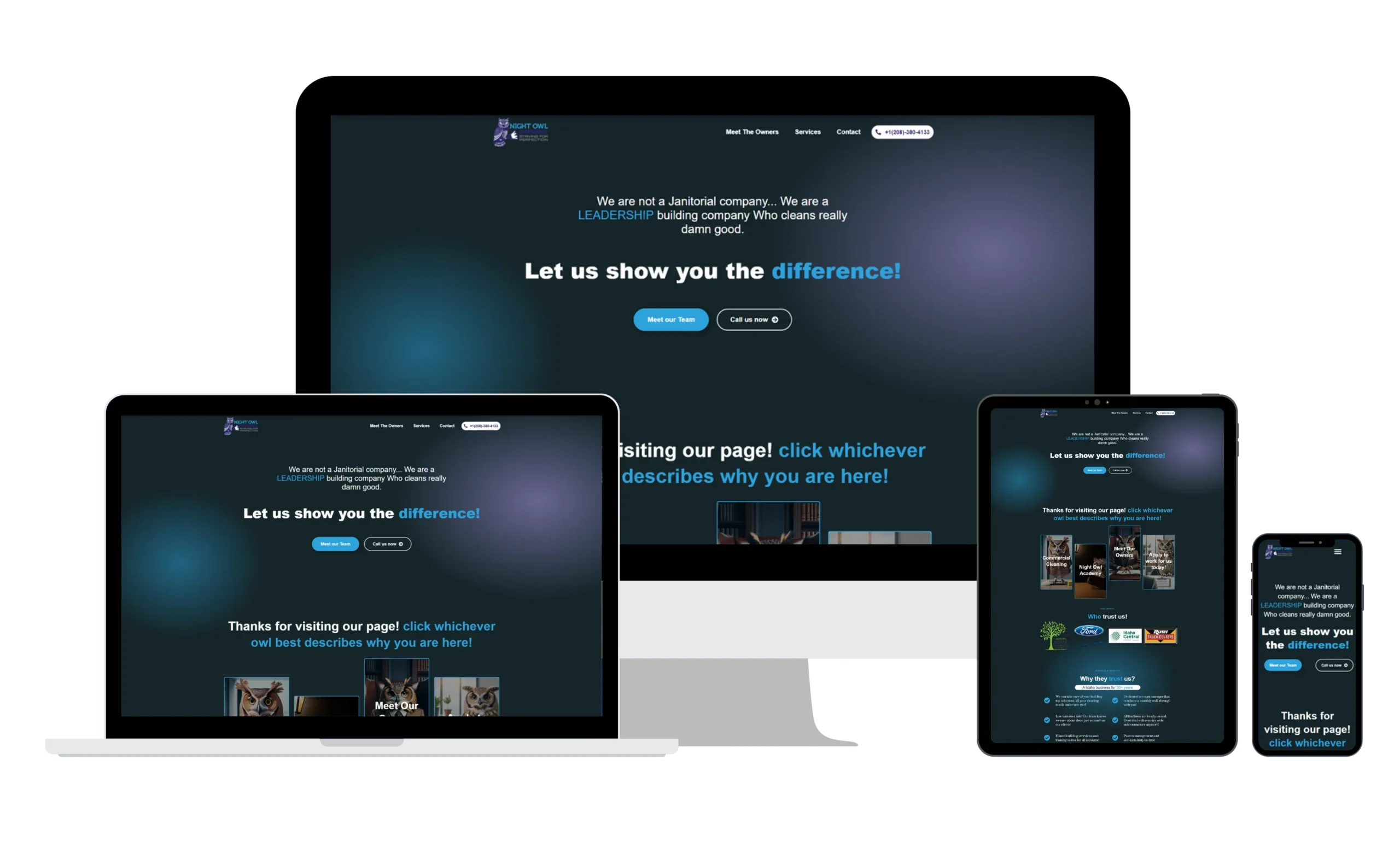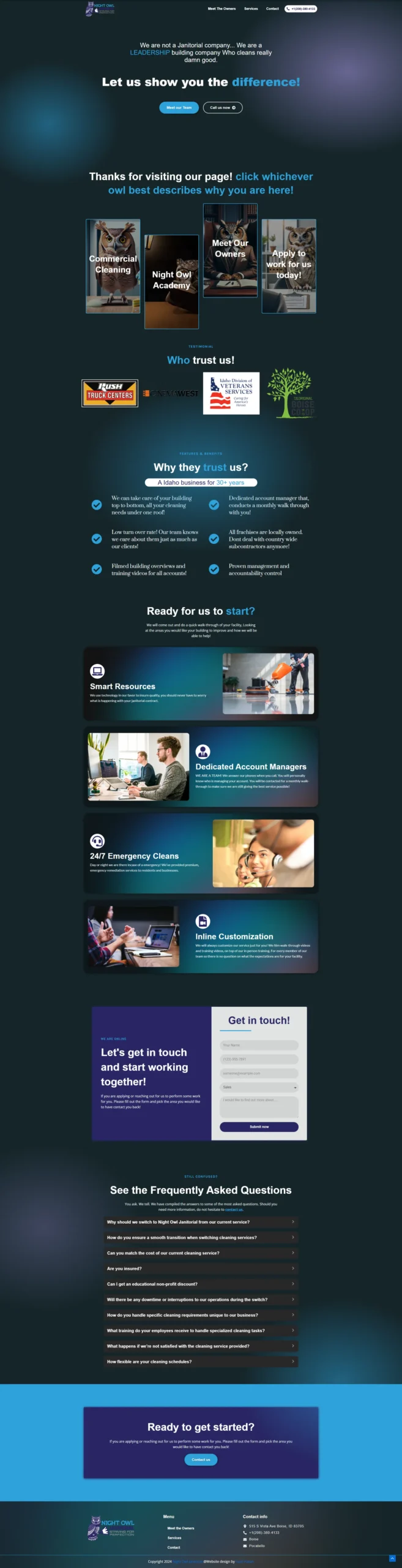 The project also included optimizing the website for search engines to improve visibility and attract new clients. By focusing on user experience and functionality, we were able to deliver a website that not only looks great but also serves as a valuable tool for both Night Owl Janitorial and their clients.